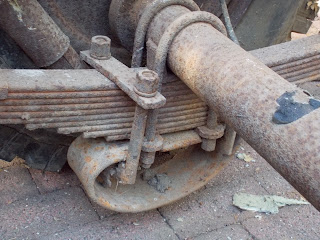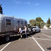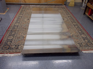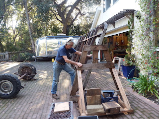 Well, we have another confession to make. Mark was a little bored, since we are almost done with the Safari, so he asked me to look for another project and of course I found him one. A 1952 Airstream cruiser! Each time we get an Airstream it is longer and older than the one before it -go figure! We bought her sight unseen and had her shipped here from Kansas! Here she is getting unloaded: